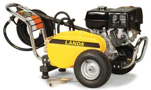 LANDA’s portable, belt-drive, cold-water pressure washer line offering models with cleaning power of up to 4,000 PSI.